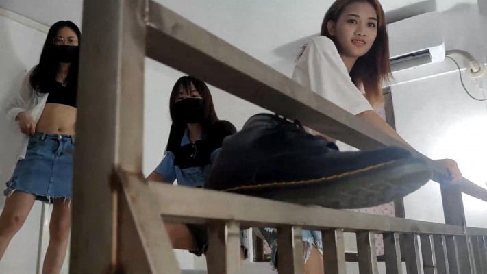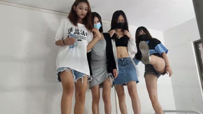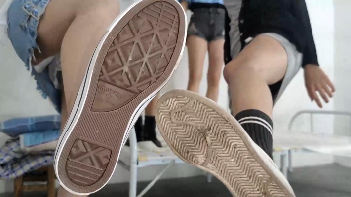 江门4位女神小姐姐小白鞋匡威马丁靴踩床pov
