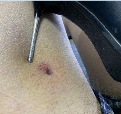 【蓝色-凌然】超细打磨的鞋跟大腿钻血洞,10和12厘米高跟跺肚子