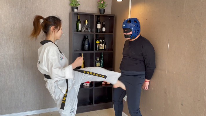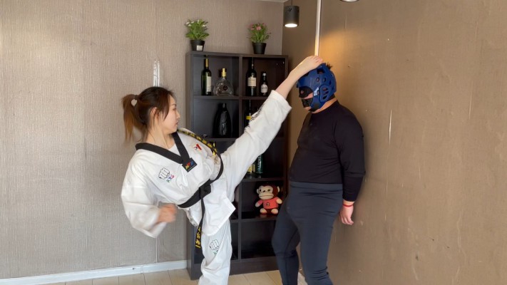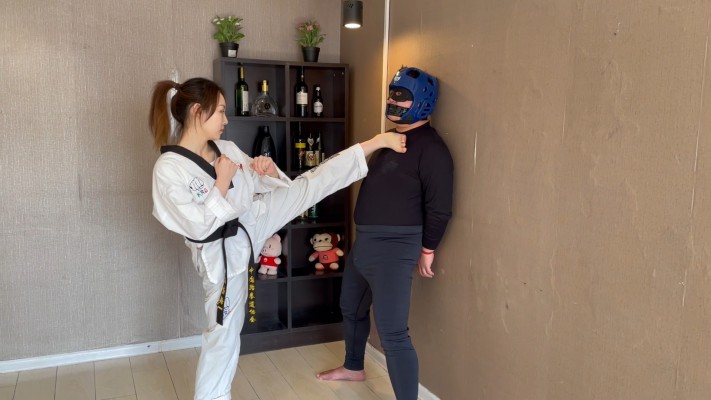 绝美女神级跆拳道黑带女S-神祺小主出演,拥有黑带2段高超腿技的神祺小主本片分为三部分:第一部分是个人POV空击,小主热身后对着镜头展示各种高位控腿踢击,目标当然是镜头另一头的你;之后祺祺让男的带上头部护具,开始直播讲解的方式,来讲述如何用跆拳道腿法来踢废色狼,以高踢踢头,弹踢踢裆为主来讲述。最为精彩的便是最后一部分,小主用真实踢击力度来招呼男的头部和裆部,旋风踢、回旋踢、高位横踢等等,幸好男的戴的头部护具,不然真的会被祺祺活活踢死。