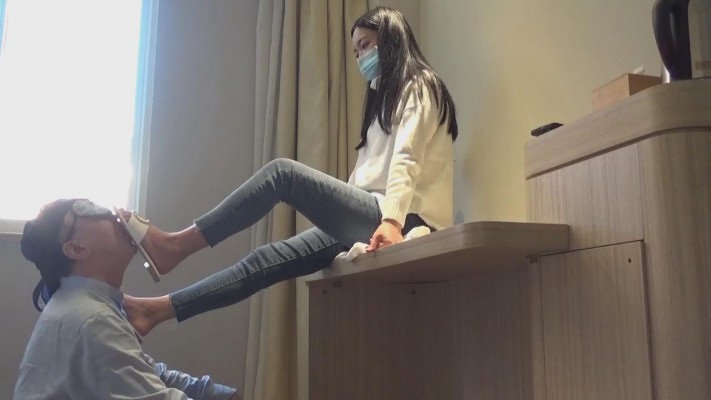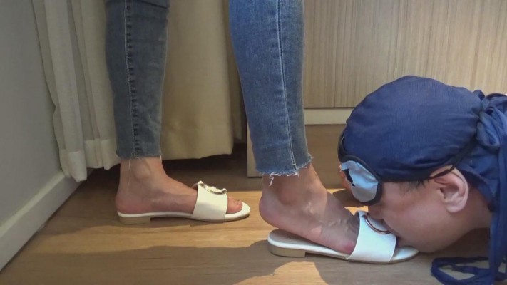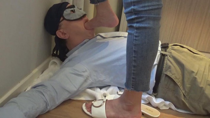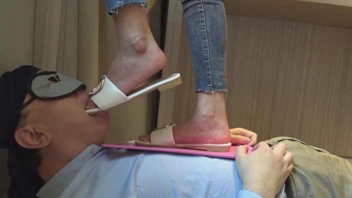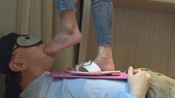 在肉垫身上践踏、蹦跳,令添鞋、擦鞋底、脚按摩。脚奴给美女卖力的清洁鞋面、鞋底和鞋跟,被美女踩身体插嘴玩弄,先当擦鞋布,再给主人清洗美丽的光脚。美女的调教语言丰富, “狗子爬过来”、“给主人清理鞋”“觉得我的凉鞋香不香”、“你咋这么贱呢?看到主人的凉鞋就不行了吧”、 “贱狗就配给主人添鞋”、“清理好了有赏啊”、“主人的脚香不香”,“真贱,给我添脚是你的荣幸哦”,御姐真会玩。