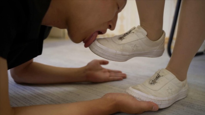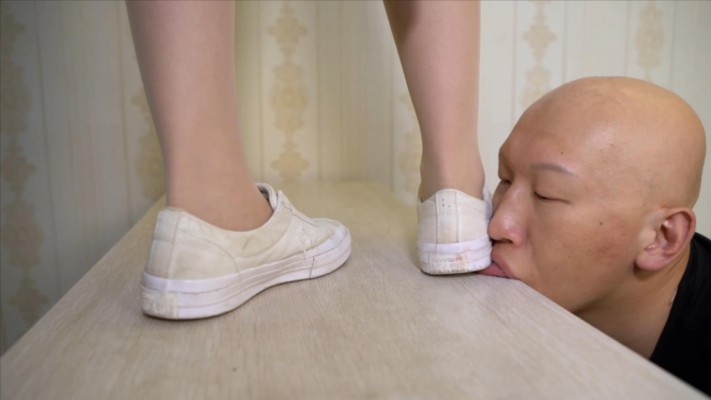 绾儿现在已经非常有女王范了,不断的命令贱狗把鞋底舔干净,用不屑的眼神盯着贱狗,每一处都要舔干净,有做的不好的地方耳光和鞭子马上招呼了上来。觉得贱狗把鞋舔的更脏了,更是让贱狗跪在桌子前面,让贱狗把舌头伸出来去踩舌头。最后还全体重站在了贱狗的头上,贱狗疼的直喊疼。