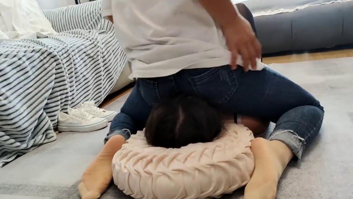 暴力虐踩踩女M,脚踹,在肚子上跳踩,闻舔原味白棉袜,脚尖加固肉丝袜,牛仔裤坐脸窒息,手深喉催吐