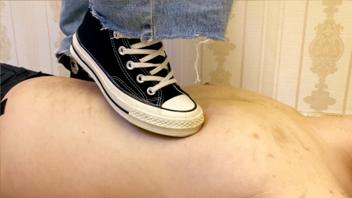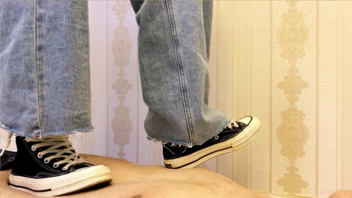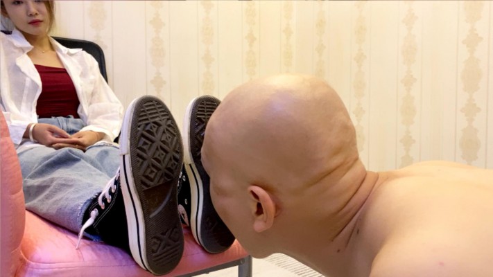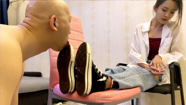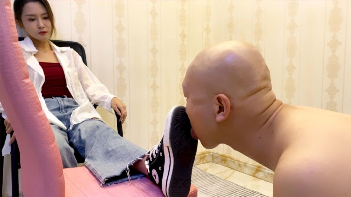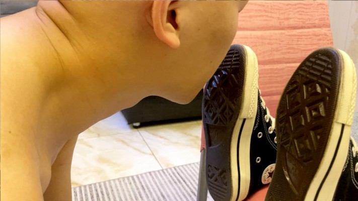 致敬经典,灵感来自于欧美的一部视频。 Sun穿着一双高帮匡威帆布鞋,让M用力的舔,各种视角让你看个够。然后全体重踩头等。