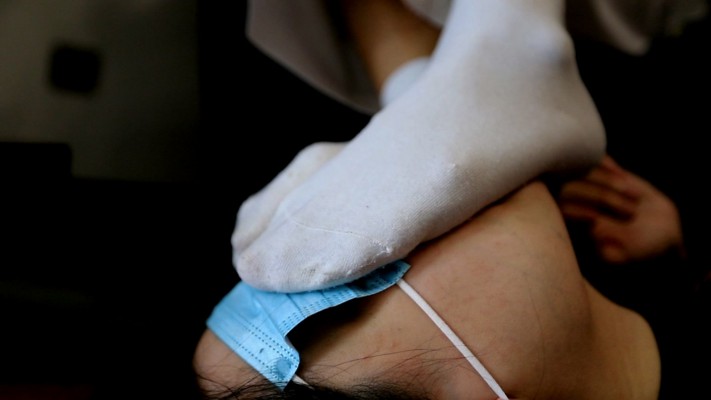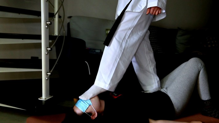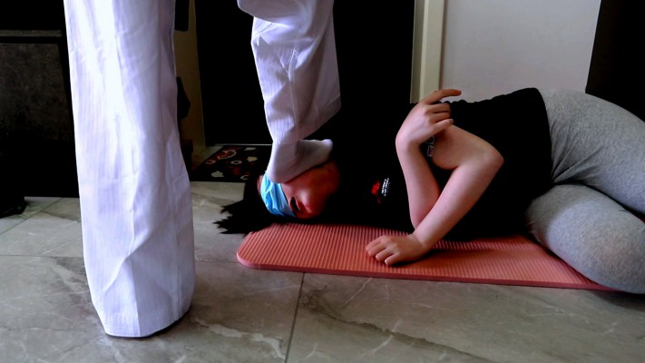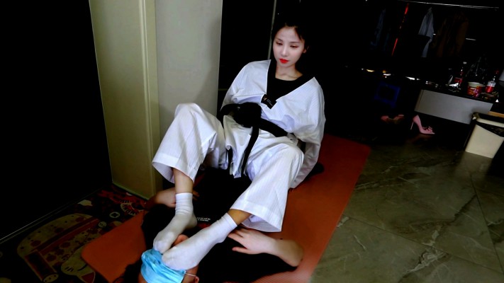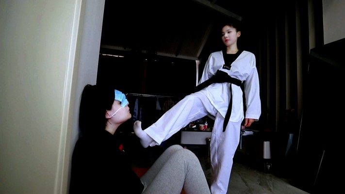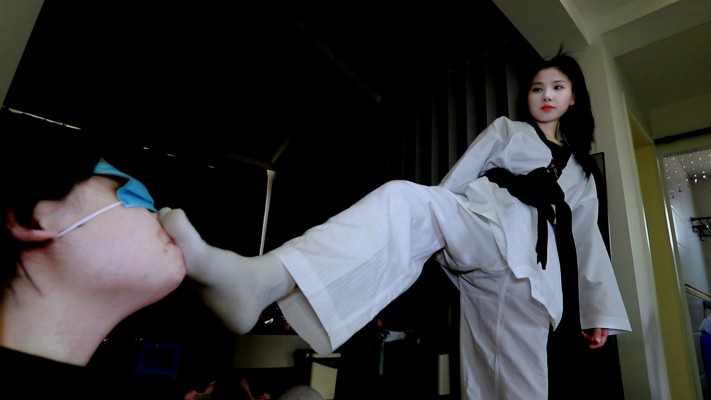 惑心跆拳道原味白袜虐女奴,臭袜子虐脸给女奴闻,踹肚子踩裆,跺踩跳踩