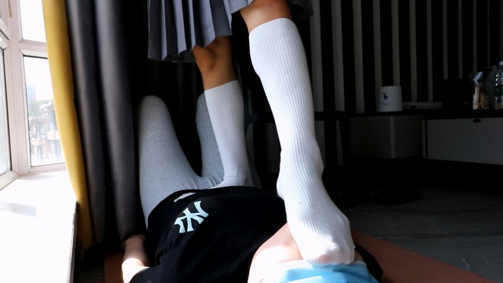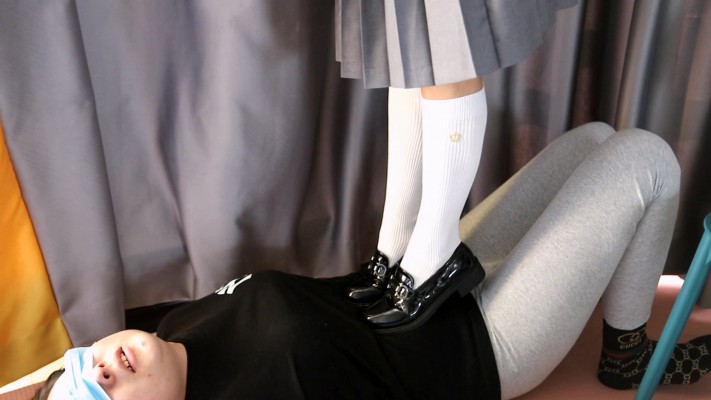 超清画质 JK白袜皮鞋踩踏跳踩,后脚跟跺肚子,闻袜子,嘴里吐痰