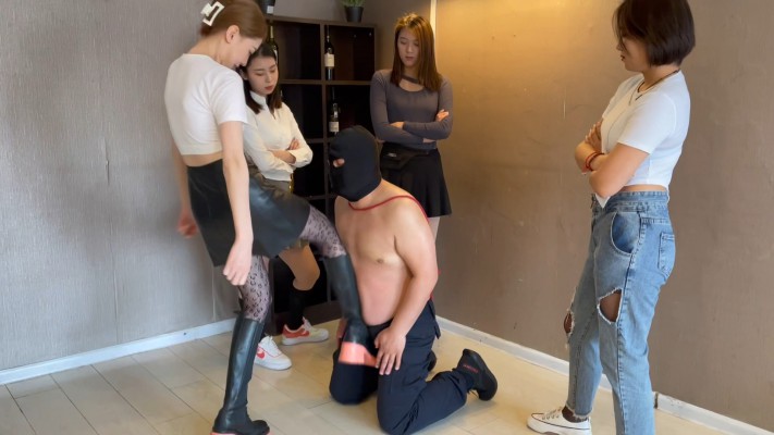 一个倒霉的变态在闯入了一间女生宿舍偷取丝袜内衣时,被女生寝室的学姐逮到,正在学姐用超狠的踢裆惩罚变态时,寝室的其他女孩碰巧回来也撞见了,于是所有女孩一起参与进来,对猥琐男展开了群体碎蛋惩罚,一双双美腿轮流轰炸着下体,最后踢废掉也不停止,还群体全体重踩踏凌辱,直到将变态彻底玩死。
