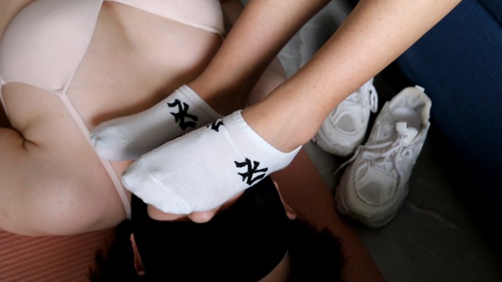 Baby运动鞋白袜踩着母狗的脸边享受母狗的狗脸按摩舔脚,边对摄影师讲述以前她做普通主播时遇到的恋足榜一大哥买她原味袜子和找她踩踏的经历