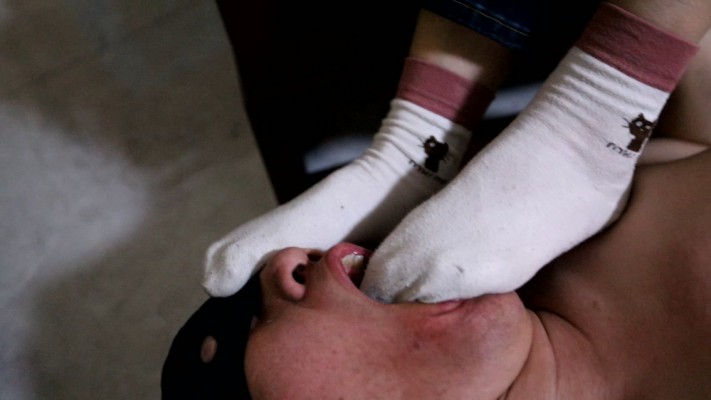 上学时候没少运动,踩着贱狗强迫他舔鞋底,闻闻我鞋里的味道,他好像很抗拒,那就强迫他舔新鲜出炉的臭袜子,撬开狗嘴强迫他舔,本想给他来个深喉,但是他嘴角长了痘痘嘴张不大,把贱狗的痘痘给撑破了,还把血染到袜子上