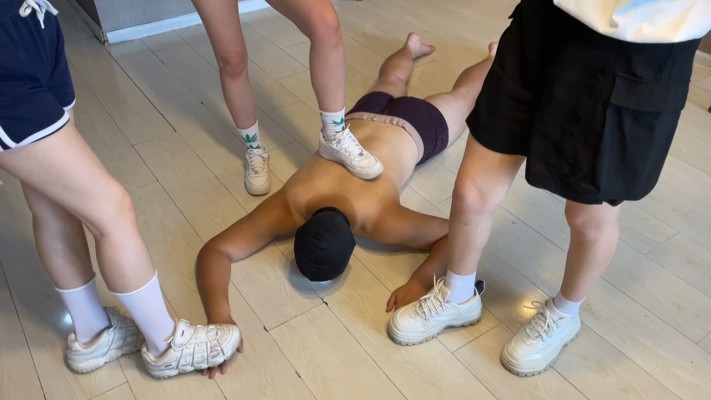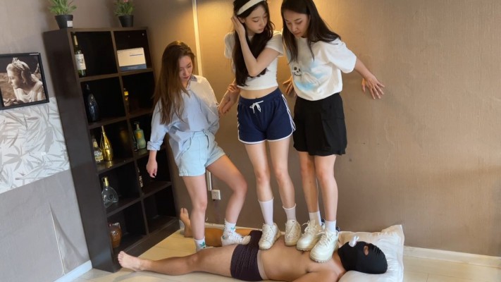 三位女主倾情联演,内容是一名女主在洗手间遭遇变态偷窥,于是将其抓住后捆绑起来,又叫来两个姐妹三人共同对变态进行惩罚。踢裆、耳光、全体重共同踩踏,强迫舔舐脏脏的运动鞋鞋底等,本片还有一个看点是,从开始惩罚起,三名女主就准备了一个玻璃杯,全程在虐变态的过程中,三名女主不间断的轮流往杯子里吐口水,到片子接近尾声时玻璃杯中的口水已经吐满半个杯子了,三名女主轮流强制性让变态男喝下去,并且还每个人又重新往男的嘴里直接吐了更多的口水。本片突出的是羞辱与折磨,鞋底、混合口水,都是不错的看点,希望同好喜欢。(里面有你们喜欢