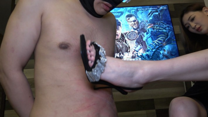 绝美艾琳用黑色高跟鞋鞋跟踹肚子不过瘾,换了一双鞋跟十分锋利的鞋,然后无情在贱狗的肚子上狠狠地划踹,鞋跟边缘像刀一样锋利,贱狗肚子全是血痕,然后就是高跟鞋跟踩乳头,不断旋转踩扎踩,下脚丝毫不留情,乳头很快就白踩出血了,艾琳虐的十分开心。