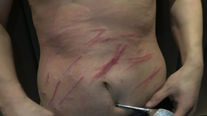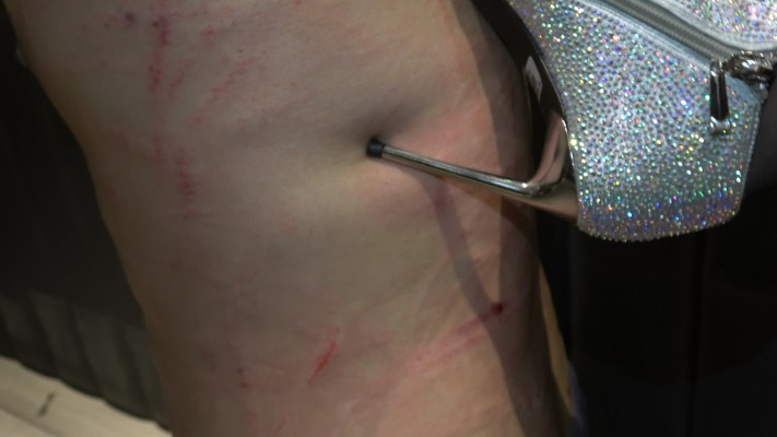 蛇鞭暴抽贱狗,毫不留情的抽,高跟鞋狠踢贱狗,踹的时候基本都是鞋跟落在贱狗身上,彼岸花觉得效果不好,换了一双新买的钢跟高跟鞋,鞋跟十分锋利,踹一下就见血,贱狗痛苦咬牙,最后满身都是血痕,相当残暴,彼岸花真是把贱狗当畜牲一样对待,贱狗的命运完全被彼岸花捏在手里!
