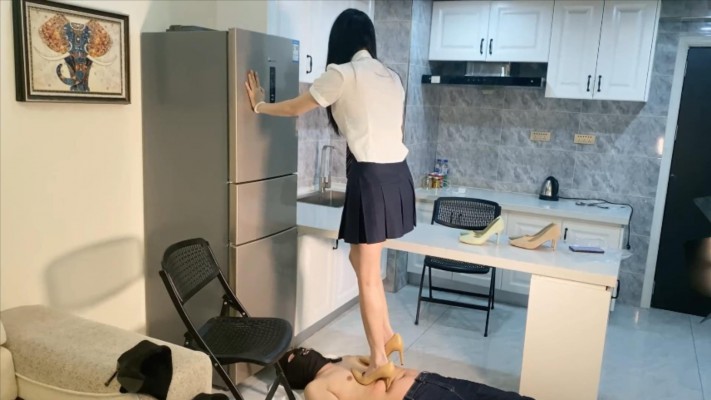梦窃女主在专属毯子身上做运动,用很多双细高跟在身上不断运动,还放着音乐,根本听不到毯子的叫声,踩完还觉得不过瘾,把喝酒剩下的啤酒盖洒在了毯子身上,毯子痛苦加倍。最后让毯子把鞋都舔干净才放毯子离开。