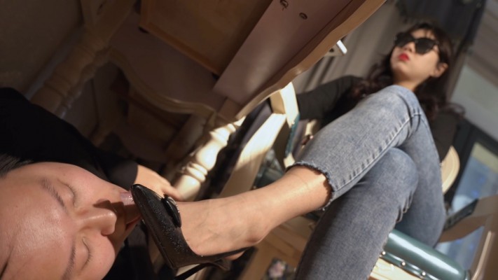 雨天的午后,主人正忙着自己的工作,让人形鞋刷在桌下下面清理上午出门的时候踩了泥的价值1万多元的PRADA鞋子的鞋底。鞋底视角,沉浸式舔鞋,主人全程冷脸,几乎无交流,完全把奴当成一个擦鞋工具。