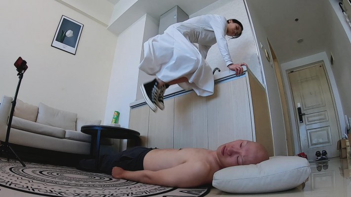 高跟光腿膝盖顶裆顶腹加关节技虐待男M