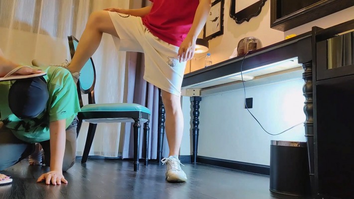 中山妍希情侣S,粉红背心,人字拖美甲红绳玉足,踩着绿帽儿子狗头和狗爪亲吻亲昵,掌掴耳光命令舔干净鞋底,用狗嘴刷鞋,女主全体重踩上去和男主亲吻,奴隶卖力地伺候二位主人,仿佛天生就为伺候主人而生,站起来走了一圈后,妍希主人就拿贱狗的衣服当搽鞋布,羞辱钻胯,脏鞋底踩贱狗的晚餐,漱口水喷脸,吃主人的接吻口水,最后喝袜子泡茶,特羞辱,形成强烈的鲜明对比。