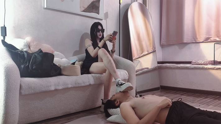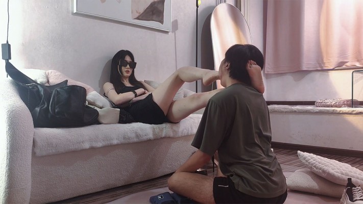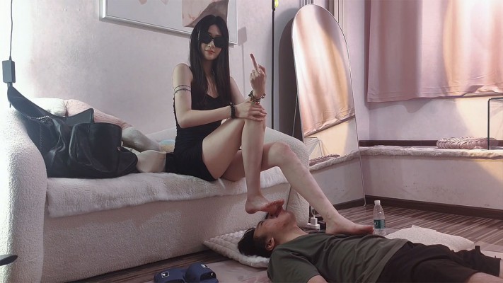 绝美175身高艾琳s穿着捂了很久的棉袜,帆布鞋踩狗脸,棉袜/裸足抽脚耳光,把脚奴的脸当成了玩具用脚快速打着节拍。暴力脚深喉,细长的脚趾一下子就顶到了脚奴的嗓子眼直接插得干呕了半天,看见脚奴那么没用,女王很生气,让脚奴躺着全体重跳踩脸,灵活的脚趾花式虐舌,夹着脚奴的舌头摇来摇去,扯长了再拉断,痛得脚奴直哼哼。全程56分钟经典恋足片无水分,女王的脚几乎没有离地。