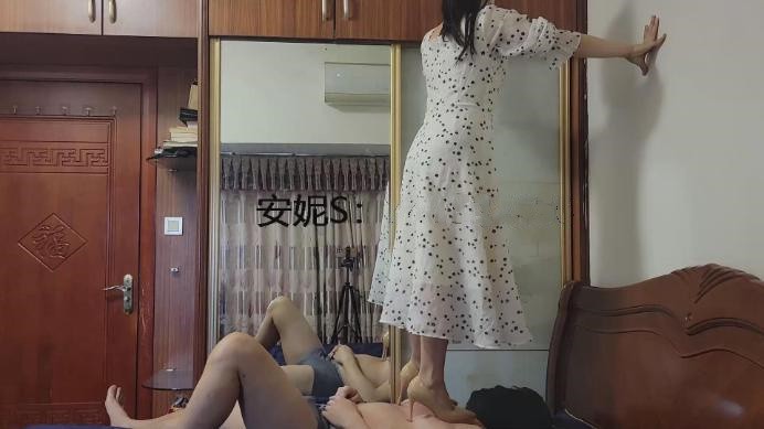 新鞋第一件事就是拿老公试鞋,这次踩胸慢慢摇,鞋跟太锋利,踩到老公呱呱叫.然后就上新买的坡跟鞋。全体重踩,碾压,踏步,小跳。