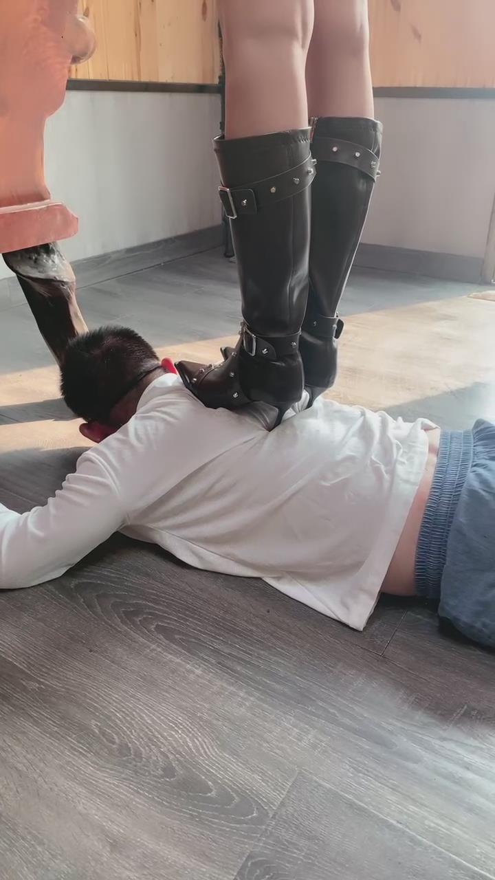 大二学生晓俞华天奴鞋子踩踏狗奴