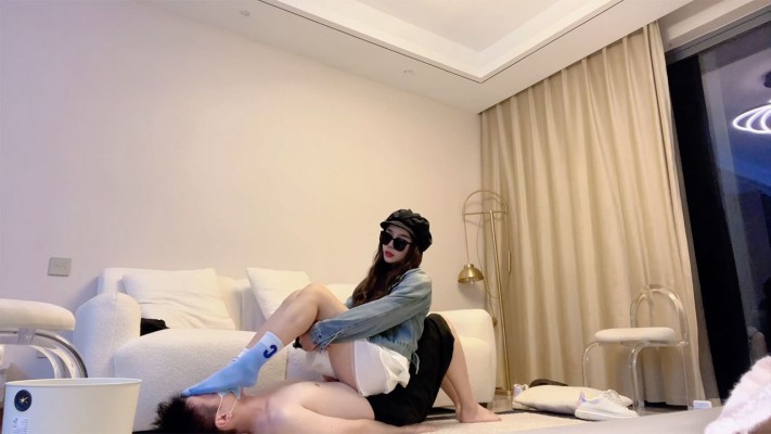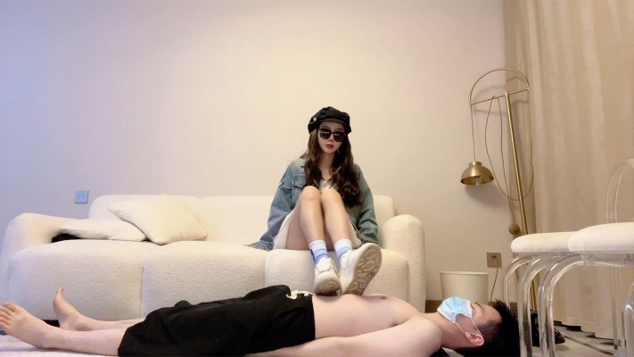 杭州亦瞳运动鞋全体重踩踏,在脚奴身上踏步走。穿着三天没洗刚运动完的臭棉袜全体重蹲踩脸,双脚抬起用力跺狗脸扇耳光,踩脖子。