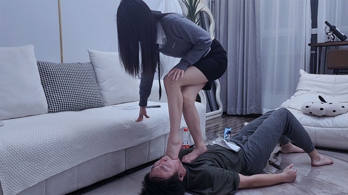 高颜值宝爷女王穿着塑料袋脚套,外面还套了两双袜子和棉鞋,捂了很久的脚汗让脚奴用舌头快速刷脚底把脚汗舔干净。女王用脚趾把脚奴的舌头拉长,随后用脚底用力扇脚奴的舌苔。让脚奴横着躺在脚底下,这样女王高抬腿可以暴力打脚耳光又重又响。宝爷的脚趾非常灵活,可以夹着脚奴的舌头扯来扯去,用力掐住往外揪花式虐舌,全体重蹲踩在脚奴的脸上,站在脚奴的身上脚深喉插嘴。