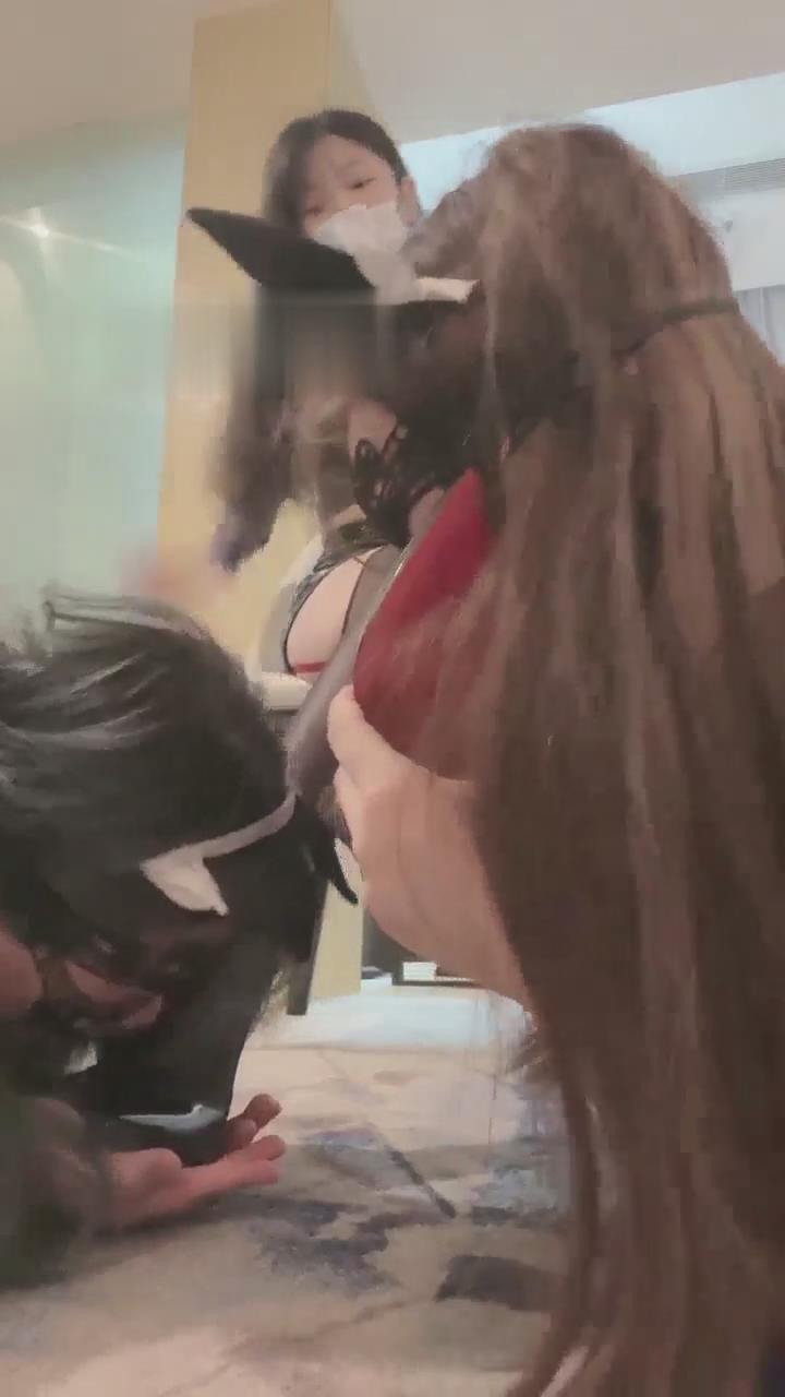 阿月-首次调教两个女奴-黑丝-高跟踩踏-舔裸足
