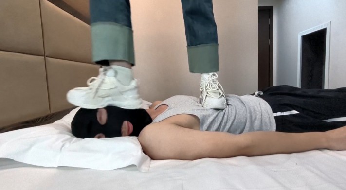 第一个能接受摄影师的贱狗来了,抗踩能力真不错,全体重踩踏,跳踩,踩头,踩下体都不坑声的,要不是踩在脚下的那东西有反应,我都以为他是个木头人了,摄影师看我踩这贱狗,自己也来感觉了,求我也想被踩,最后就来了个双人的人桥,还有两个人头当脚垫,实现了真正在狗头上踩着不着地了,摄影师被踩尽兴了以后又对那条贱狗深喉,从截图就能看出来,进去了不少。