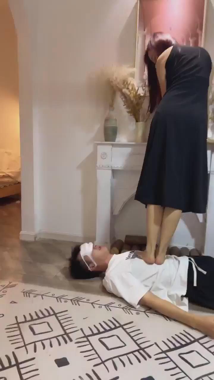 高跟光腿膝盖顶裆顶腹加关节技虐待男M