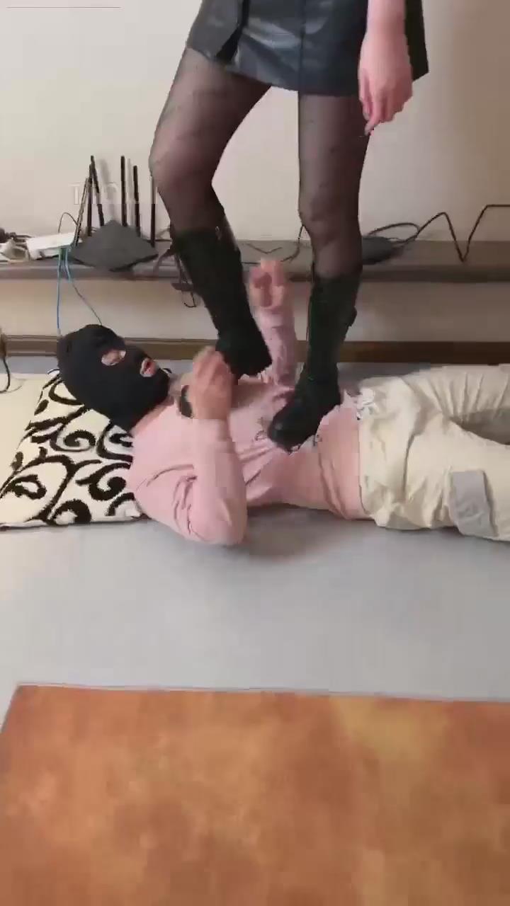 高跟光腿膝盖顶裆顶腹加关节技虐待男M