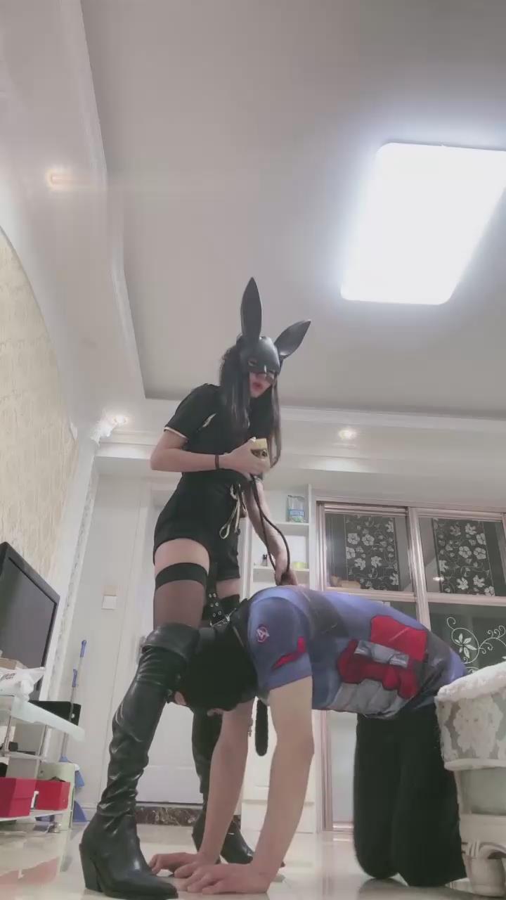 月影儿 兔女郎 黑丝高跟长靴踩狗