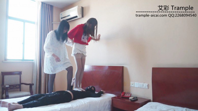 工商学院的两位美女学生分别穿上了平时穿的黑丝和肉丝,然后站好,小奴从两学生的两腿之间转过去,还有脚底摩擦舌头,脚深喉,以主人的第一视角脚深喉,磕头跪拜两位美女小主,两位小主全体重踩踏狗奴。因为两位小主都是第一次拍摄,第一次接触,都有些腼腆,有些害羞,两位美女学生主互相交谈,嘻嘻哈哈的朝笑着底下的贱奴。视频全部原声对话,不得不说其中穿红色衣服的肉丝美女真漂亮!