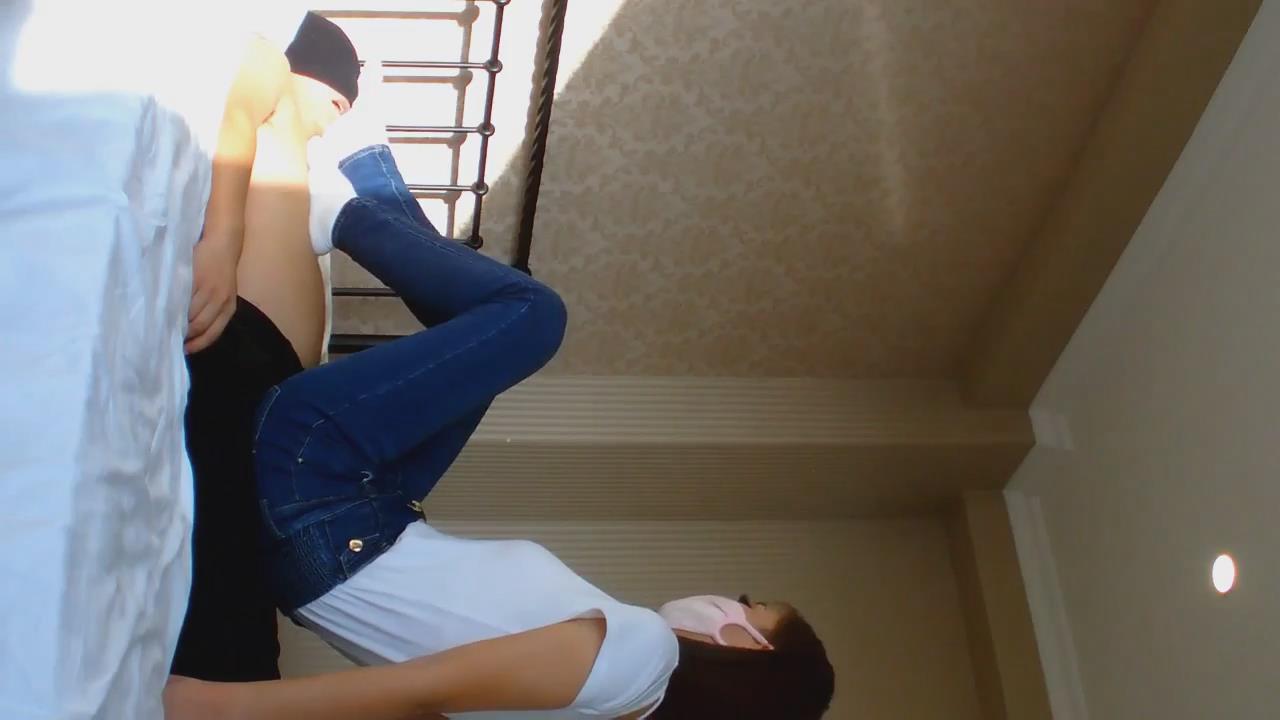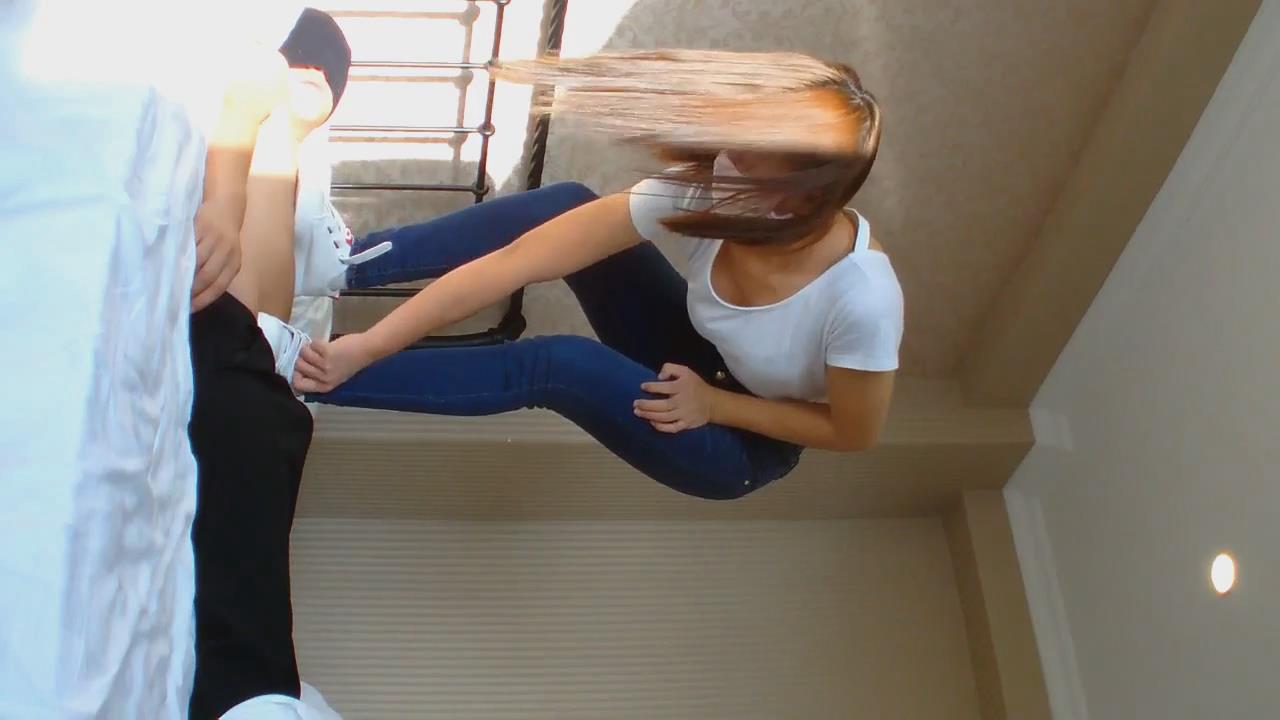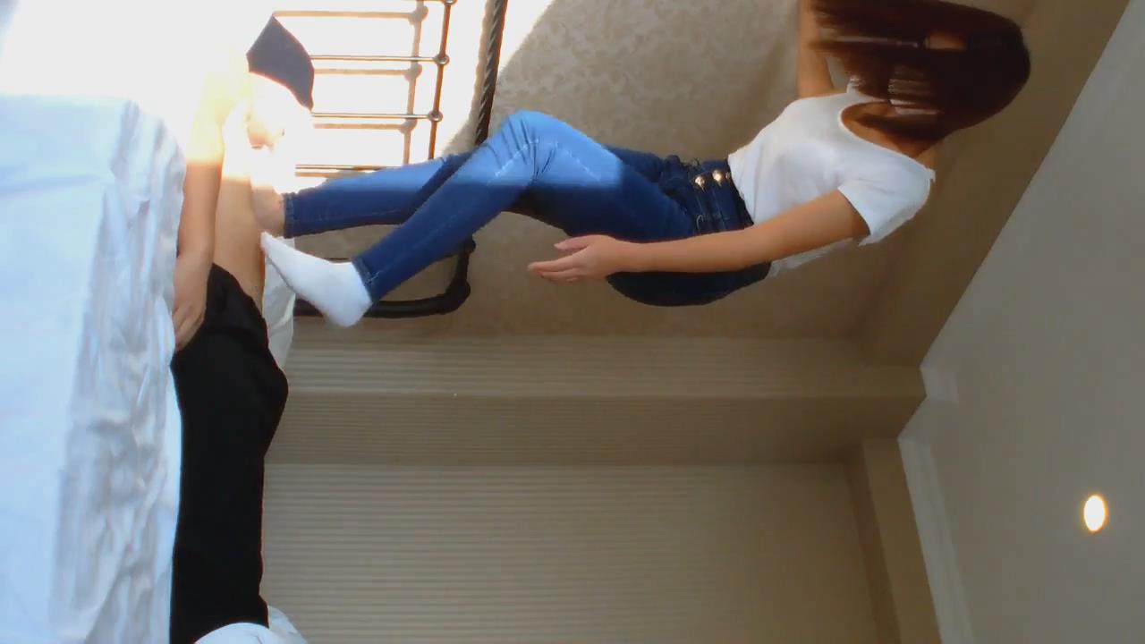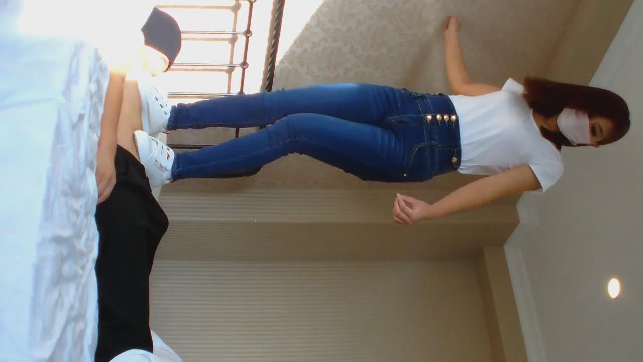 调皮女孩趁朋友睡觉坐在肚子上用脚捂脸