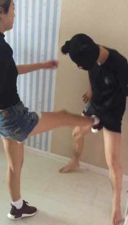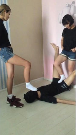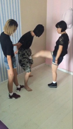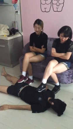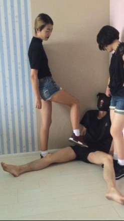 比较早期的作品,模仿日系大作NFDM59中的一个情节,学校里关系不错的姐妹花闲谈中都喜欢踢男生的蛋蛋,正聊得火热苦于没有实验对象时,其中一个女孩想到了一个好方法,那就是找来班级里智力低下的男学生小白,告诉他蛋蛋被踢爆了头脑就开窍了(亏想得出来~),没想到低能的小白居然相信了,强忍着被重击爆蛋,两位女生对他蛋蛋展开了毁灭式的打击,先是连环飞脚,还有重度膝顶,踢疼了还不忘用脚玩弄抚摸一下男孩的蛋蛋,最后玩够了两人一起给蛋蛋踢爆之后,用运动过后的白色棉袜脚,一起闷死了低能的男孩。女演介绍:由于是比较早期的作品