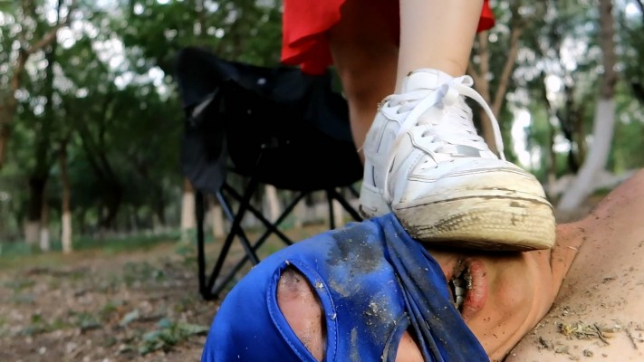 内容介绍 : 户外草地湄拉的贱狗跪在她的脚下舔她的空军脏鞋,满鞋底的泥贱狗艰难的舔着,把泥巴咽下去。从跪舔到被踩在脚底下舔,被踩着脸的狗无论如何也无法舔干净那么多的泥,最后被湄拉无情的踢开