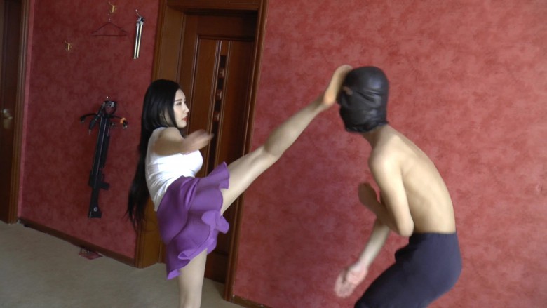 丝袜高位正反踢脸 后旋踢 高位踩脖子 脚插嘴 耳光 极端虐踩 最后有段高位重压踩喉咙 M直接休克僵直倒地 但倒地后立即恢复过来。