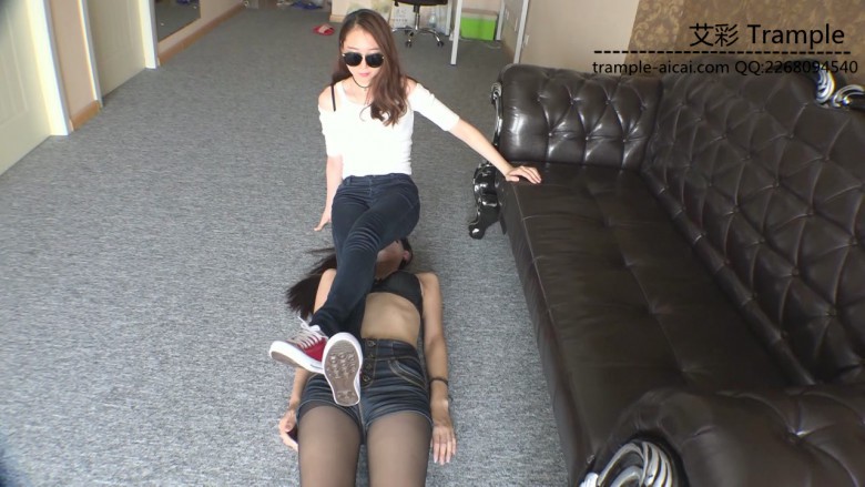 白袜帆布鞋全体重踩踏女M胸部脸头部,肚子,全体重坐女M的大胸上,当女M当沙发坐垫,地毯,脚垫,女M胸部很大,但是还是被完全踩憋下去,牛仔裤坐脸,白袜虐踩脸胸部,还在胸上轻轻踏步,踩着女M胸部上下沙发。不管是踩坐玩弄都是非常有气质。