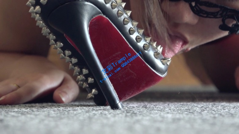 细跟钉子高跟鞋全体重践踏女M,在女M的大胸上踏步,甚至在胸上跳踩。调教女M舔钉子高跟鞋,黑丝袜踩踏跳踩,语言挑逗修复。