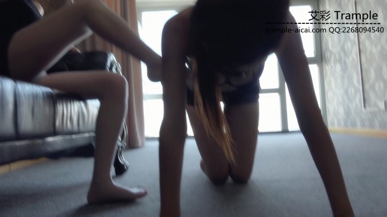 『艾彩女女』白丝高跟凉鞋踩虐女奴,踩胸部和舌头