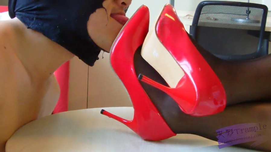 低贱的脚奴舔舐着女王的高跟,把尖头高跟含在嘴里,吸吮着主人的鞋跟,任由女王的脚在嘴里抽插,一只脚肆意的蹂躏着DD,一只臭脚捂在脚奴脸上,两只酸臭的原味丝袜脚夹杂着臭臭的皮革味随意的蹂躏着男奴的脸!