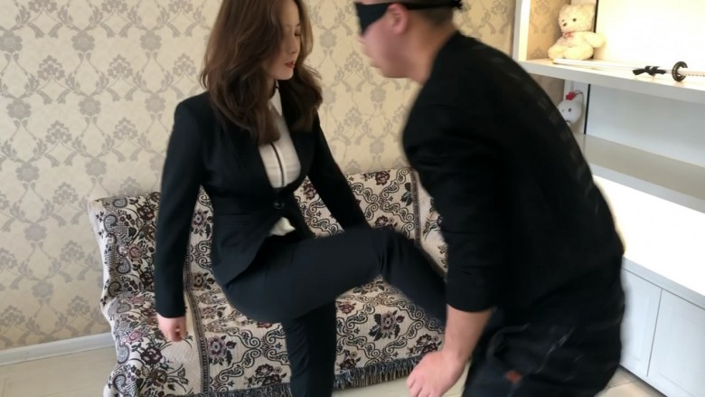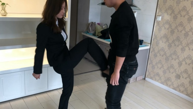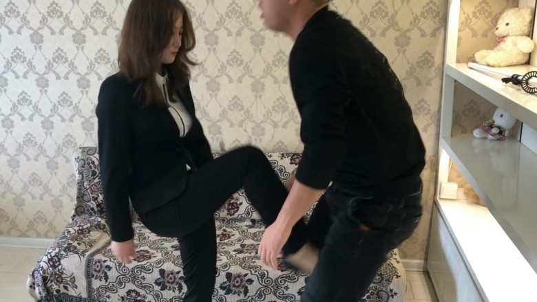 内容:芷琳S一身职业OL装,对脚下的男M各种玩弄蹂躏,先是让M给其按摩脚,然后站起身重度踢裆,让男M钻胯学狗爬,全体重高跟鞋踩踏,还有耳光恋足调教等等