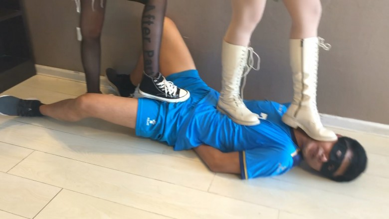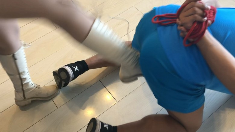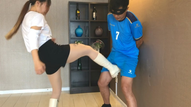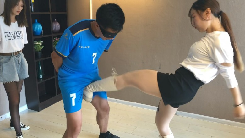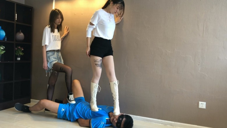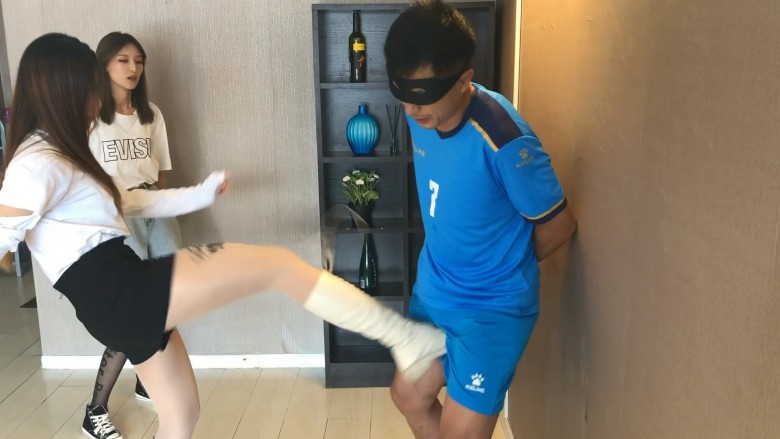 本部作品由两位新S梦悦和霏霏出演,没有太多冗杂剧情,上来直接就开虐,悦S身穿性感字母样式黑丝,带动穿白色皮靴的霏霏S,各种碎蛋脚伺候,开始霏霏S还有点扭捏,后来越发狠毒,脚脚致命,其实懂踢裆的同好都知道,只有脚背鞋尖直接命中蛋蛋才是最伤的,两位女S完完全全使用脚背狠踢,踢不够居然还给男M放倒之后双人全体重踩上去,男M脸都踩歪了。最后抓着头发轮流踢,男M据说之后缓了一个多星期,蛋蛋才消肿。。