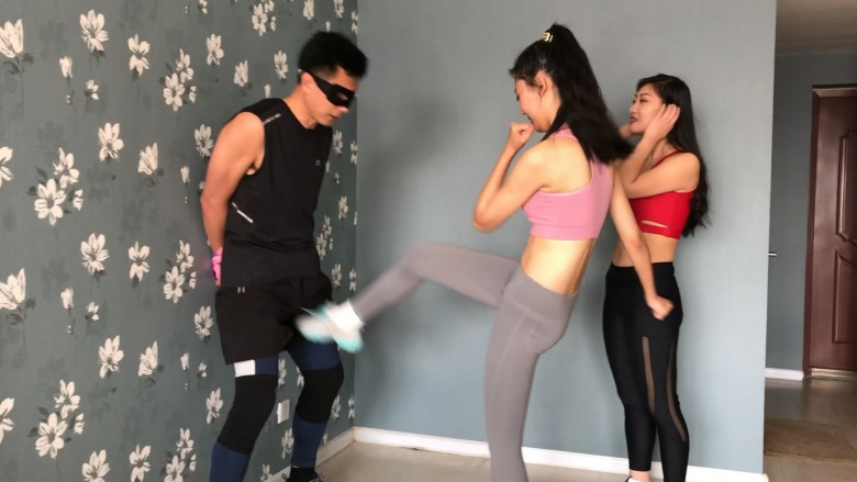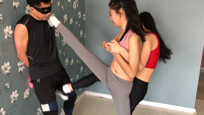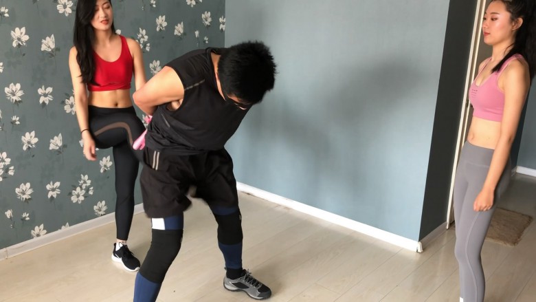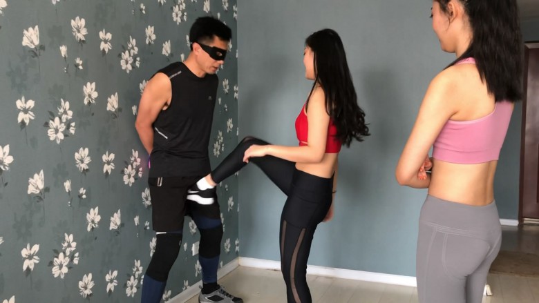 猥琐男在健身房偶遇两名性感健身女孩,本想上前搭讪调戏,不料反被两位女孩套路当成陪练,殊不知他这个陪练,练的竟然是踢裆。。。被两位美女各种大长腿重度踢击,一字马玩弄,两位女S一位是大家熟悉的妃S,另一位是新人淼淼,外表长相酷似欢乐颂中的关关,体操员出身的她柔韧度非常好,不仅踢裆铿锵有力,一字马下劈腿更是出了名的狠,一点不逊色于妃S,最后猥琐男的下场,自然是JJ再也没有了知觉。