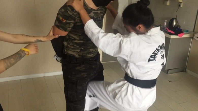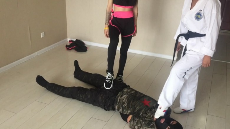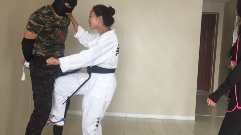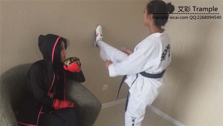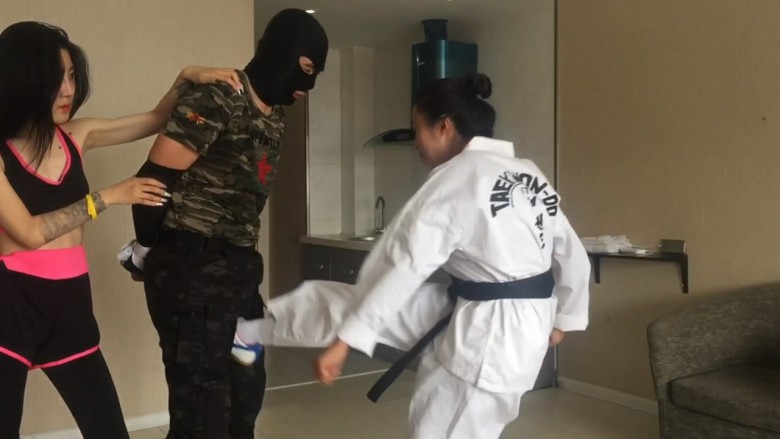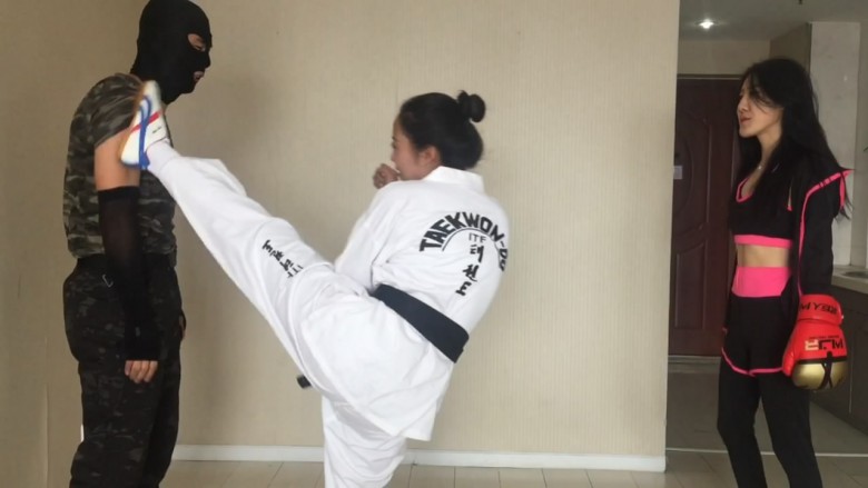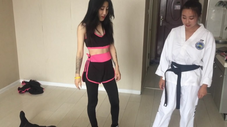 这次剧情比较老套了,奕奕和阿姒是同在一家拳馆的两位女弟子,奕奕主修拳击,阿姒则是跆拳道腿法。这天在听闻她们的师父在一场比武中被对手活活打死,于是二人想要替师父报仇,于是她们找到了打死师父的对手塔,以武学切磋为理由想要跟其格斗,塔见是两个小姑娘便色心大起答应陪她们玩玩,结果在切磋过程中奕奕和阿姒发现这个塔根本就不会是师父的对手,他一定在比赛中耍了诈出了阴险的招数。于是奕奕和阿姒一同协力,使用她们独特的踢裆招数,好好的惩治了这个阴险小人塔,塔在两位美女凌厉的踢裆脚面前节节败退,无奈承认了使用卑劣手段害死了她们
