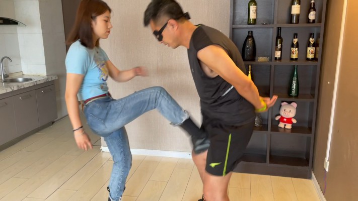 嘉欣女主饰演一个被渣男玩弄的少女,正在愤愤不平的时候遇到了一个不知好歹的搭讪男,那自然是没好果子吃,搭讪大叔本以为好事将近,实则大难临头。被穿着凶狠皮靴的嘉欣施展的鞭腿一次次的重击裆部,最后彻底报废了嘉欣还不忘展示了最后一击的习惯~~~
