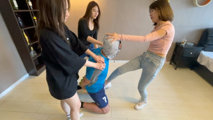 痴汉在电车上尾随三位姑娘一直回到家中,想要偷腥。没想到三位少女各个身怀绝技,她们戏谑的玩弄蹂躏着这个变态痴汉,在欢声笑语中将其活活折磨残废。。。