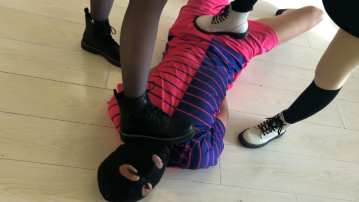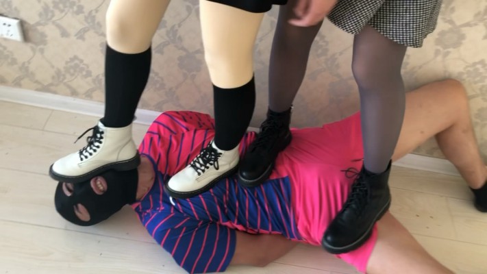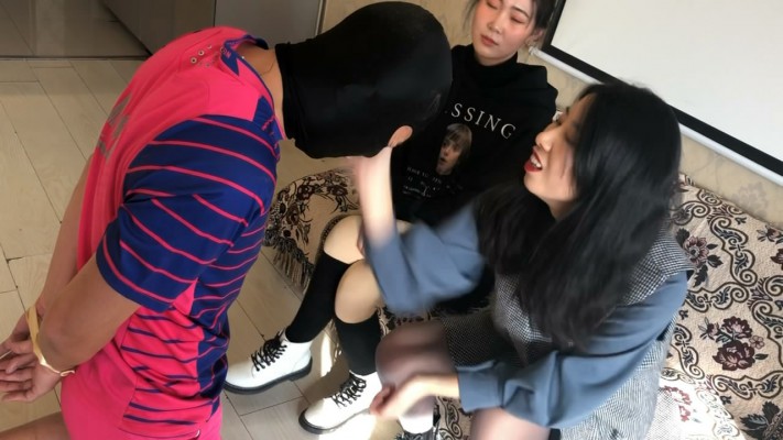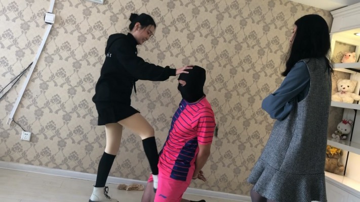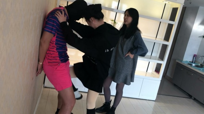 两名高校女学生,发现一个偷偷进入寝室偷她们丝袜的变态男,于是就以报警相威胁,迫使色狼被她们狠狠地教训了一顿。
