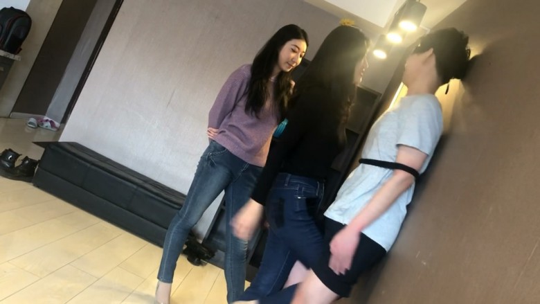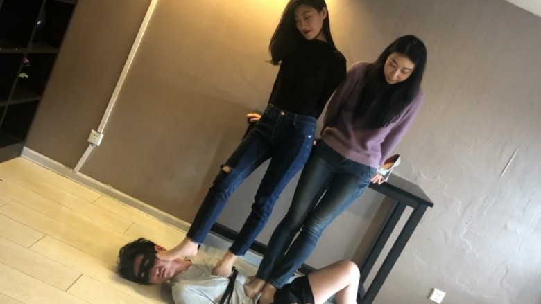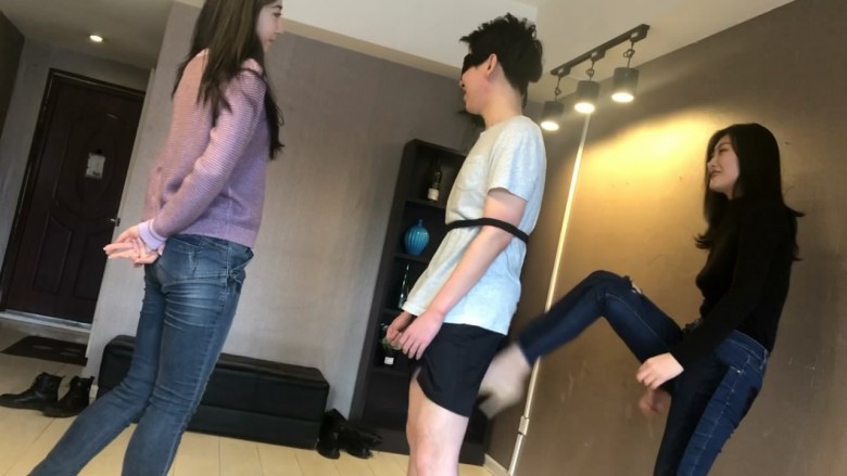 本部作品男演员是客串的小奶狗一枚,体格非常瘦弱,承受力也力不从心,不过两位舞蹈系女S非但没有丝毫怜悯,反而觉得对这种承受力差的M施虐才是真正的快乐,二人反复玩弄着脚下的奶狗,非常尽兴。小奶狗痛苦的程度,可以从他的惨叫声中完全体会。。。。