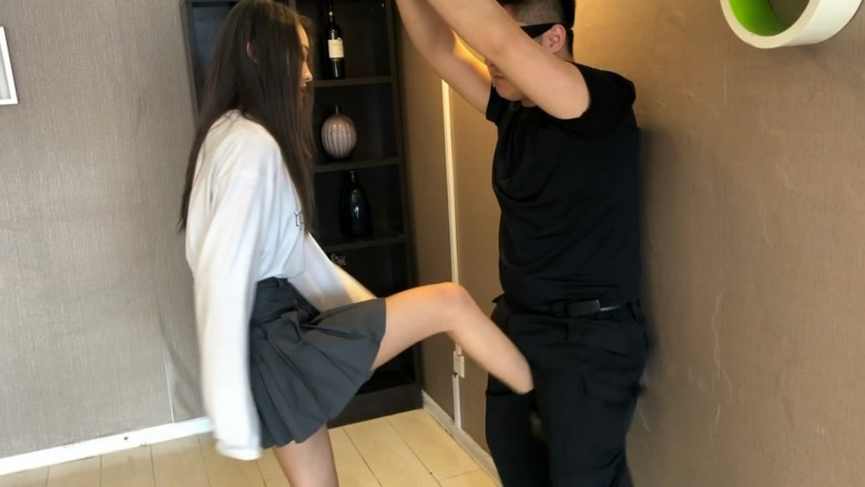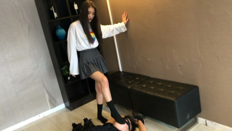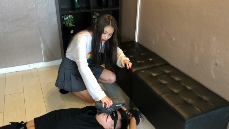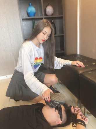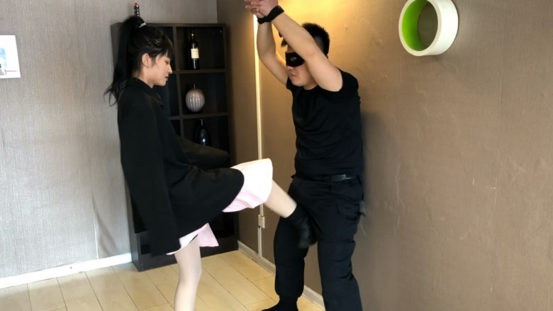 本次女演员采用了比较清纯的两位学生妹,外表青涩的脸蛋儿,内心却是极度狂野的小恶魔。两位女孩对着男M,先是轮流的踢裆折磨,之后又将男M衣服套头,让其在黑暗中尝受乳头责罚。然后二人将男M放倒,强迫其闻鞋,厚厚的运动鞋和皮靴,那味道是相当浓郁了。折磨够了之后两个学生妹还不忘给男M来个口水责。片长也是长达半小时,让大家过足眼瘾。