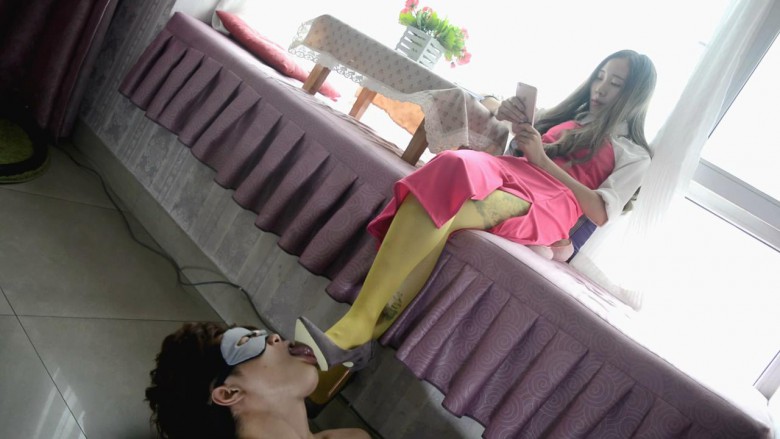 舔鞋、舔丝袜脚;牛奶倒到腿上顺着脚尖流进奴嘴里;丝袜堵嘴;拿掉丝袜指挥舔脚。