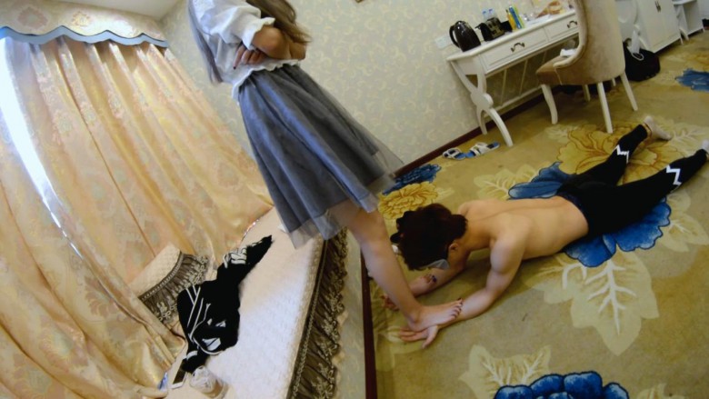冬天里穿运动鞋在路上跑步锻炼;回家后用奴隶的身体、舌头擦鞋;把捂了一天的臭袜子让奴隶闻、舔;用脏袜泡热水、泡的时候舔脚;最后强迫奴隶喝掉袜子泡的水...