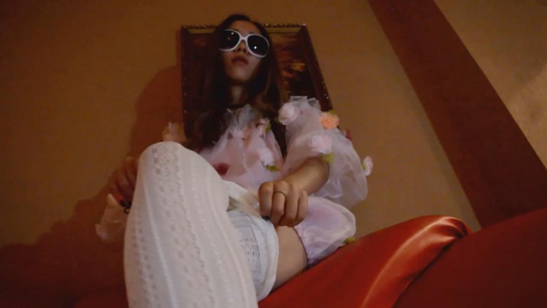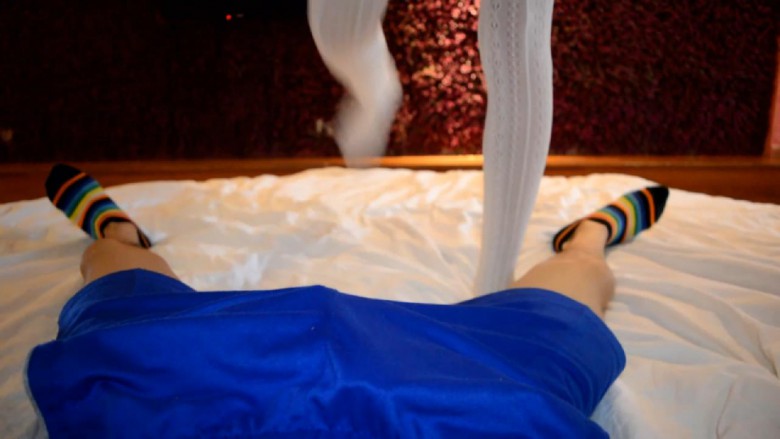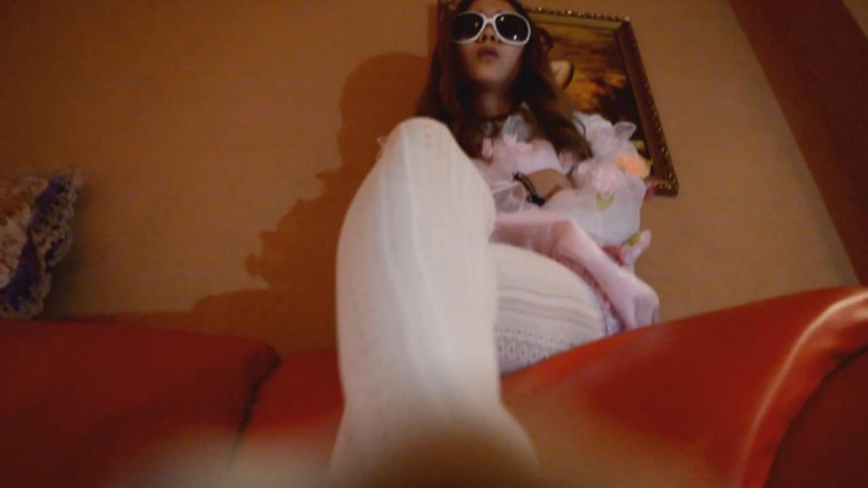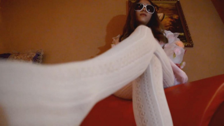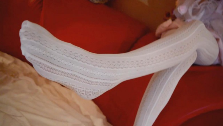 粉色花连衣裙、白色蕾丝丝袜,第一视角坐脸、踩裆、闻脚、舔脚。